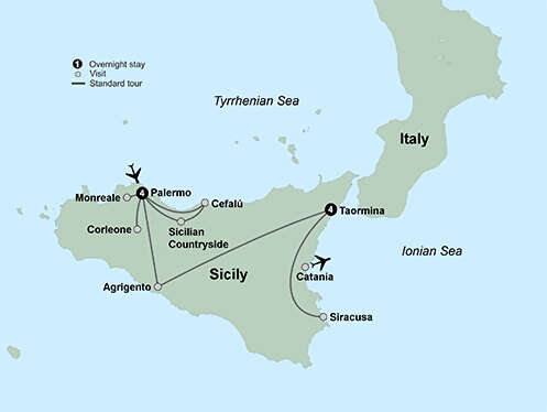 Delve into the fascinating mosaic that is Sicily. Explore this beautiful Mediterranean island on a grand tour and discover the influences left by ancient Greeks and Romans, Arabs and Normans. Get acquainted with Palermo’s colorful markets and the city’s famous “street food.” Spend time at Monreale’s 12th-century cathedral. Indulge in a 4-course meal with wine pairings curated by a professional sommelier. Meet a countess in her beautiful palace and visit a family-owned farm where you’ll hear Sicilian folk music and learn how they make ricotta cheese. Travel to Corleone and learn about the anti-mafia movement. Enjoy Agrigento’s spectacular Valley of the Temples (UNESCO). Spend 4 nights in Taormina, the jewel of Sicily, perched above the Ionian Sea. Choose to visit Savoca, one of the film locations for “The Godfather,” OR visit the beautiful medieval mountaintop village of Castelmola. Reflect on the grandeur of ancient Greece during an included excursion to the historical sites in Siracusa (UNESCO), whose archaeological treasures rival those in Athens.