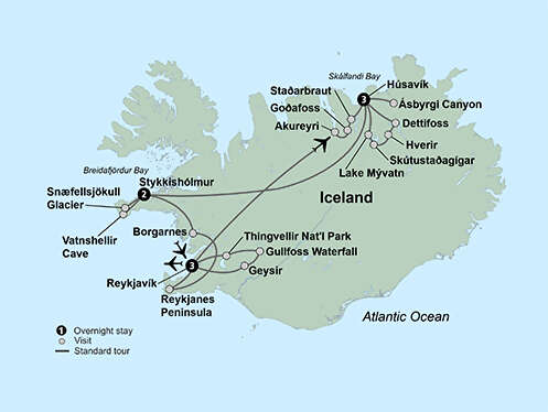 Set out on a small group journey that reveals Iceland’s adventurous landscapes and cultural heritage. Explore old town Reykjavik during a walking tour. Witness the stunning Golden Circle first hand. See Thingvellir National Park and the unbelievable Gullfoss Waterfall. Experience the Friðheimar greenhouse cultivation center. Be immersed in Icelandic life during a countryside farmhouse stay. Go whale watching in Skjalfandi Bay with specialized RIB boats. Travel the Diamond Circle and spend time at the geothermal baths of Lake Myvatn. Marvel at the vast Asbyrgi Canyon. Spend time with a family that keeps alive traditional methods of catching and preserving Greenland shark. Climb aboard a mountain truck to explore the Snæfellsjökull glacier immortalized in Jules Verne’s Journey to the Center of the Earth. Savor Icelandic delicacies during an exclusive tasting while being immersed in uninterrupted mountain scenery. Decide between an expertly guided mountain or glacier hike. Complete your tour with a dip in the famous Blue Lagoon.