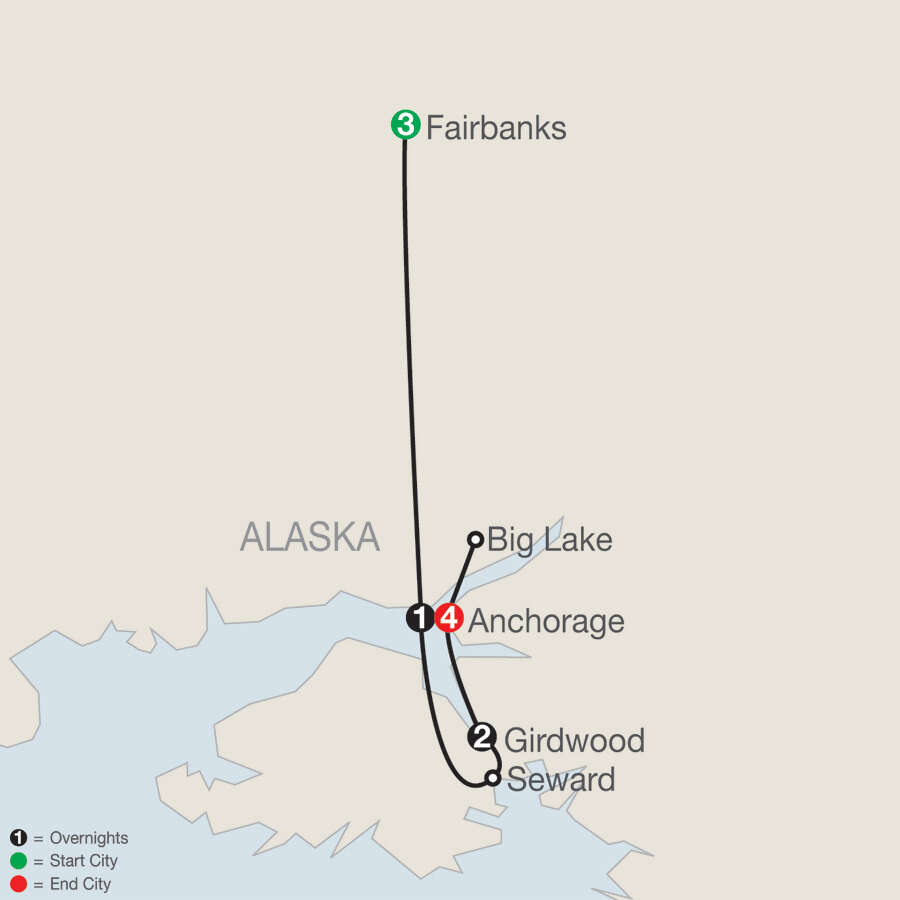 FAIRBANKSMorris Thompson Cultural Center; Trans-Alaska Pipeline; Alaska Railroad, 2 excursions for chance to see the Northern Lights GIRDWOOD Alaskan Wildlife Conservation Center; aerial tram rideANCHORAGE Welcome breakfast; sightseeing; behind-the-scenes visit at Alaska Zoo; [LF] attend the Musher’s Banquet; visit Iditarod Headquarters; see the ceremonial start of the Iditarod Race; visit the Alaska Native Heritage CenterSEWARD Alaska Sealife CenterBIG LAKE [LF] Visit Happy Trails KennelsWILLOW Attend the official “restart” of the Iditarod race
